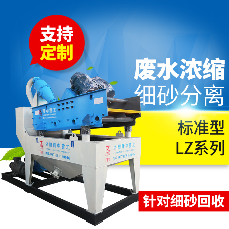 LZ系列細(xì)砂回收機(jī)工作過程:渣漿泵將砂水混合物高壓輸送至泥砂分離器,經(jīng)過高壓離心分級(jí)濃縮的細(xì)顆粒物料,經(jīng)沉砂嘴傳送給脫水篩,經(jīng)振動(dòng)篩高頻脫水后,細(xì)砂與水有效分離,精品細(xì)沙由高頻脫水篩排入皮帶。污水、泥等雜物經(jīng)緩沖返料箱排入沉淀池。