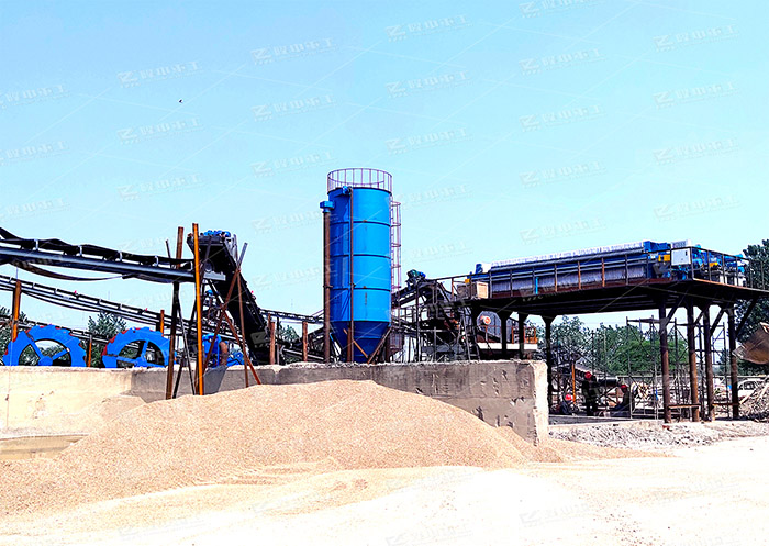 7月初江蘇連云港某家企業與隆中重工達成合作,新建一條新型環保河卵石機制砂清洗生產線,本方案對機制砂進行清洗回收,并對洗砂尾水進行干排處理。目前,該項目已正式投產。
