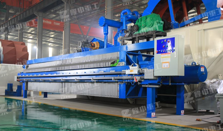 廂式壓濾機是利用濾布兩邊的壓力差,迫使物料中的J大部分水分透過濾布,流出機體外,而物料被阻隔在濾室內形成濾餅,以達到過濾的目的。由于在過濾過程中濾布兩邊存在著較大的壓力差,提高了過濾速度降低了濾餅的含水率。