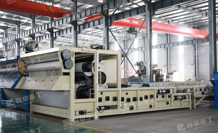 帶式壓濾機是一種固液分離設備,廣泛用于水處理和廢水處理工序中的污泥脫水。該設備是通過兩條濾帶纏繞在一系列順序排列、大小不等的輥輪上,利用濾帶間的擠壓和剪切作用,來脫除料漿中水分的一種壓濾設備,是一種進行污泥脫水減量化處理的理想設備。